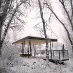 The structure is a pragmatic response to the various constraints of the site. The tilted columns were conceived to triangulate the lateral loads associated with a structure that, by floodplain regulations, were not allowed to have walls. Off the backside of the structure a small cantilever celebrates the release of captured birds back to nature. The roof drains to a central skylight (fondly referred to as the squoculus) to capture rainwater and filter it through vegetation, soil, and rock before returning it to the floodplain.