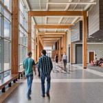 After explosive growth, the McKenzie County School District retained JLG Architects to take them through extensive Educational Master Planning, Site Selection, Design, and Pre-Referendum Services, including selection of a Construction Manager At-Risk, in anticipation of a bond referendum. The urgency of exponential growth in the county and student populations prompted the McKenzie County School District to initiate an aggressive plan to meet current and future needs throughout the school district. After an unprecedented 90% passage, the new 800 student high school facility eliminates portable classrooms and was fast-tracked and met it’s goal of opening by the Fall of 2015. The landscape around the new school utilizes natural grading for walk-outs to outdoor spaces on each level. The primary south facing façade drastically improves energy efficiency and comfort for students and faculty. The new school is designed to easily facilitate collaborative learning environments and flexible educational space needed in the modern day delivery of education. The new Watford City High School is now the crown jewel in a community determined to show its pride statewide.