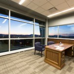 Morrill tours USU recruits through the Center with pride and happily hosts them in his office — something he and his staff had never done before the new facility opened in May 2014. The expansive glass and metal façade that characterizes his office — and the $9.7 million facility as a whole — gives the building the aesthetic and practical appeal crucial for competing in the ultra-competitive recruiting environment of college athletics.