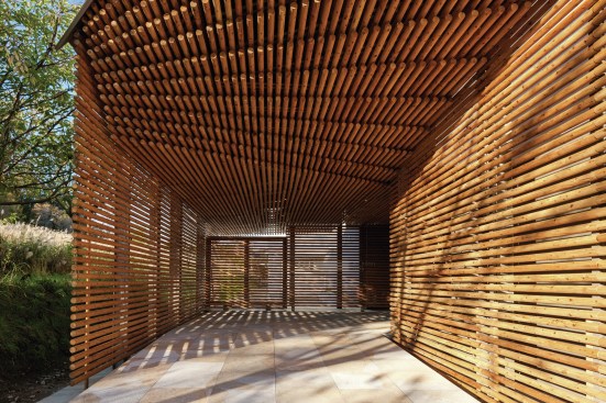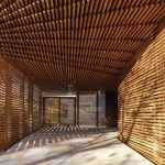 Locally produced cedar logs were applied both for the façade and the interior in order to create a space of comfort.
