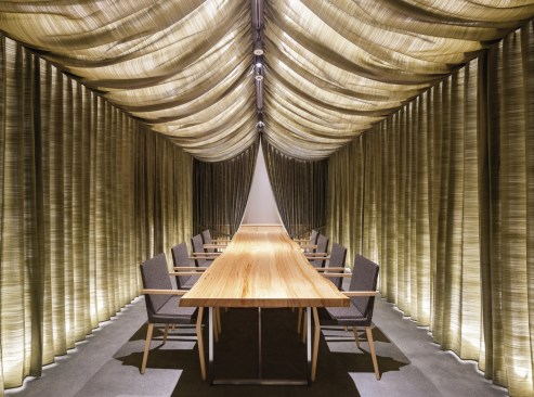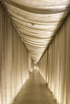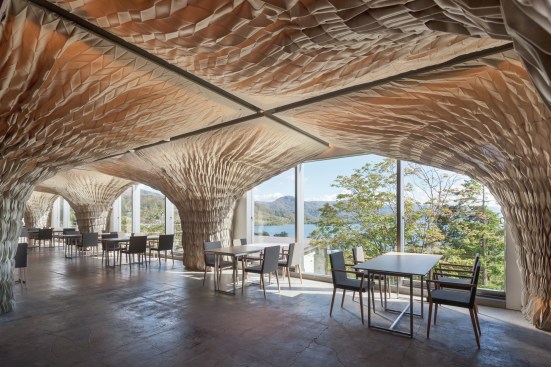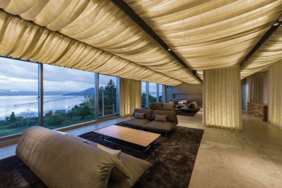 We also designed a cave-formed space with pleated cloths in the interior over which a magnificent view of the lake’s surface emerge right in front.