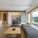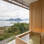 In the balcony of each guest room, a hinoki (cypress) bathtub is placed so that the guests can enjoy both the spectacular landscape of the lake and the fresh aroma of the tree.