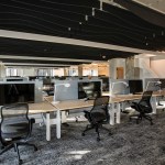 Many reclaimed materials, all from Weber Thompson’s previous office at the Terry Thomas building, are found throughout the space. Salvaged items include perforated plywood ceiling panels, ceiling fans, and a blackened steel panel in the lobby. Additionally, conference room furniture was created locally by Watson furniture and supports flexibility: Tables in some rooms can be reconfigured for large meetings or class-room style seating.