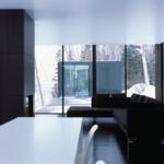The weekend house on Lake Superior is reduced to a few essential elements. The main house and a small studio sit on a black terrace framing the water of Lake Superior. A long simple white table runs parallel to the lake. A narrow vertical tower encloses the fireplace. Cabinets conceal the complexities of daily life. The house provides a serene connection to a beautiful, rugged landscape. The site occupies the North Shore’s highland moraine. Patches of wetland filter the water runoff. The house minimizes its disturbance of natural water movement and employs passive heating and cooling strategies reducing BTU consumption per square foot by 47%.