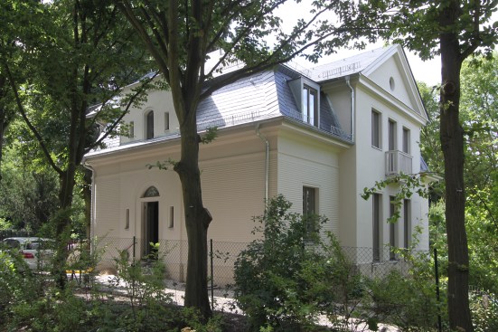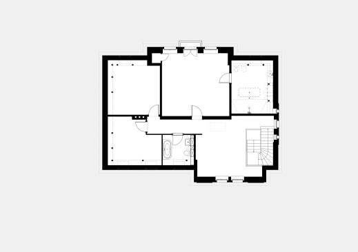 Originally, the house, consisting of a ground floor, a top floor mostly on the roof area and a cellar, all three about the same size, had been planned for one menage. Because of the splitting in different apartments und numerous built-ins the inward hab been strongly reshaped. After years of vacancy the house was in need of restoration and modernization. On the one hand the exterior of the building should be retained basically on the other hand there should be formed a generous and modern living spaces inside.