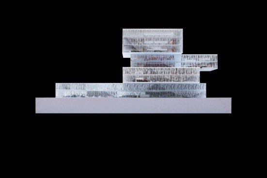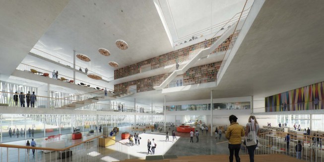 The library will house 30,000 books, a 300 seat lecture hall, and various space for study and research. Reading spaces are organised around the central book stack, leading to a grand reading room on the top level.