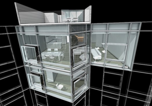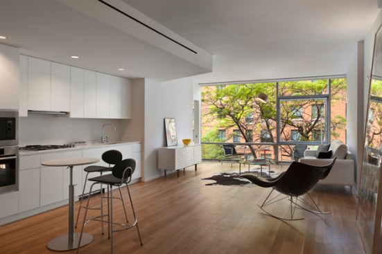 405 West 53rd Street is a dense fabric for city-living, combining maisonette, duplex, triplex and studio apartments into an extensive mid-Manhattan block project. Stacking skip-stop floor-thru units on top of the maisonettes and a below grade parking garage creates a building section of remarkable economy with views across and along the street, westward to the Hudson River and eastward for early morning light.