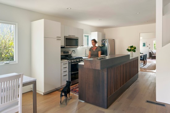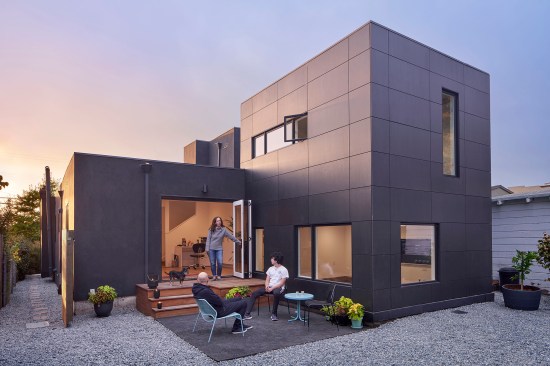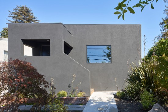 A new two-story volume is an addition to this existing Berkeley bungalow. The new space, a fifteen-foot square footprint, adds a sunken family room on the ground floor and a new bedroom and bathroom above. Skinny windows on the upper level capture views of the hills beyond while a large picture window on the ground level invites a vivid, framed view of the backyard. The volume, clad in a rain screen of marine-grade plywood panels, feels like an extension of the residence yet also a distinct and separate part.