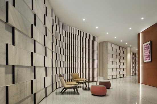 Like most projects, ODA executed on the architecture, interior design and landscape design. The three-pronged approach gave the building a thorough narrative: from the three-dimensional patterns of the lobby interiors that mimic the facade, to the amenities that punctuate the building with pockets of color and life, to the extensive terrace landscaping with first-of-its-kind built-in planters that allow the building’s exterior to grow and change with the seasons.