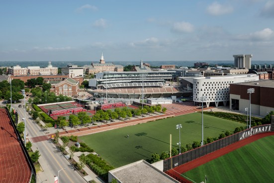 New York–based Architecture Research Office (ARO) is perhaps better known for its careful, cerebral urban planning studies than its completed buildings, making the firm, at first glance, an odd choice to design an addition to a Midwestern college football stadium. This is especially true for the University of Cincinnati campus, which is famed for its collection of modern architecture designed by the likes of Frank Gehry, FAIA, Thom Mayne, FAIA, and David Childs, FAIA.