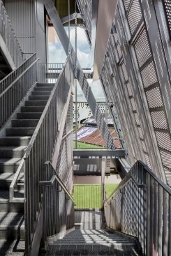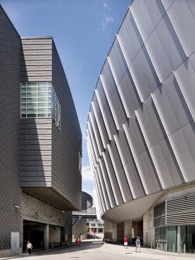 The West Pavilion sits less than 10 feet from the Gwathmey building on campus, 30 feet from the Morphosis building and very close to buildings by Harry Cobb and Michael Graves.“Given the tradition of great architecture at the University of Cincinnati," says Stephen Cassell, principal of Architecture Research Office, "having the chance to work on that campus is, in itself, an enormous honor and responsibility. This is a university that greatly values the role of design in their students’ educational experience.”