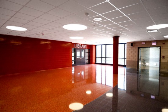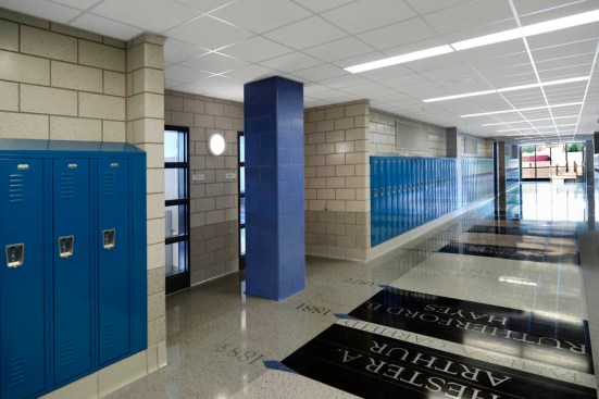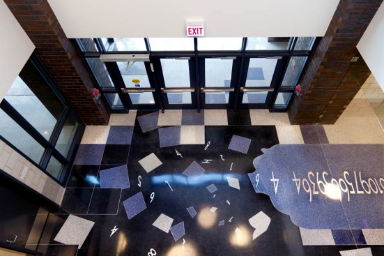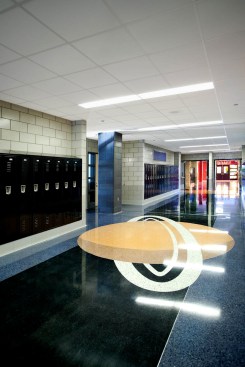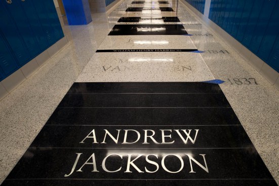 To enhance the personality of the school and provide educational elements, the lengthy corridors were fit with artistic custom designed terrazzo floor patterns. The three themes include a timeline tour of American Presidency from George Washington to Barack Obama, the never-ending non-repeating mathematical constant value referred to as “pi” (π), and an engaging scale version of the planets orbiting the sun in our solar system. Each floor pattern was developed for use as a teaching tool, captivating the minds of students and teachers alike.