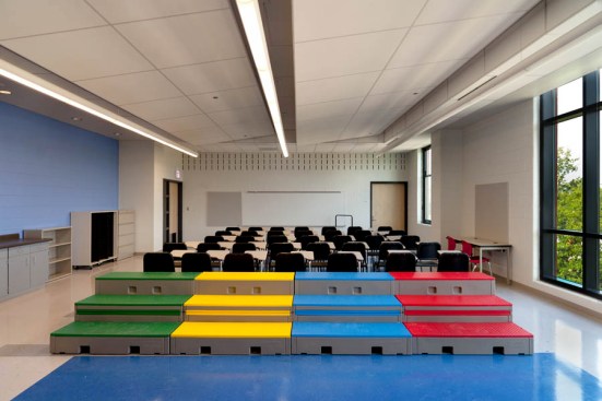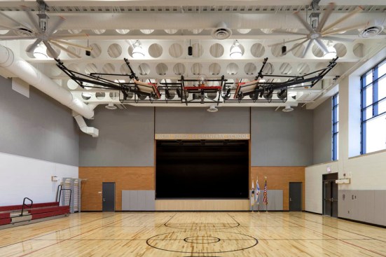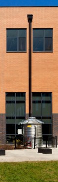 Designed to achieve USGBC’s LEED for Schools Silver rating, this building maximizes student, staff, and community exposure to day-lighting and good air quality while achieving optimal acoustics for an ideal learning and working environment. It is constructed of high quality, easily maintainable materials which are projected to last 100+ years. In addition to a large extensive green roof, the building features two large water storage tanks to harvest rainwater which can be used to water the outdoor student-maintained bio-garden and study sustainable water usage in the classroom.