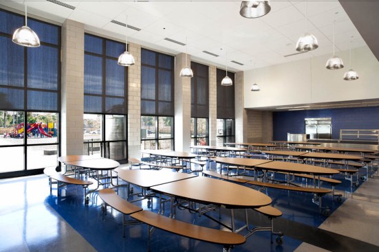 A large, open-airy library with expansive glazing is a noticeably graceful cornerstone anchoring this new school in the West Ridge neighborhood. A solution to overcrowding of two area elementary schools, West Ridge Elementary is welcomed by its neighbors to enhance the flourishing ethnic community and serve as a new focal point for after-hour neighborhood functions. With a capacity of over 900 students, the school is widely anticipated to be one of the top schools in the public school system.