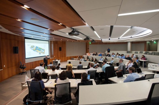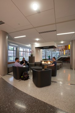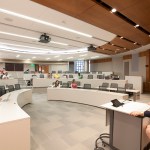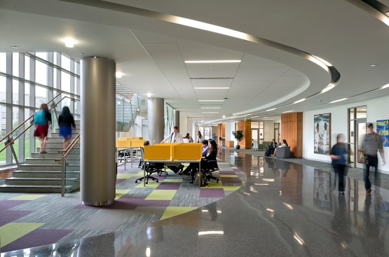 Guided by the mantra “always consider the future of medicine”, the new facility is designed to create a holistic learning environment that fosters communication and collaboration, including team-based, problem-based and simulation-based instructional spaces aligned with an innovative organ-centered curriculum. Given the constraints of the former research lab building and recognizing that programs and staffing requirements will evolve with the start-up school, “soft space” was strategically incorporated to allow program changes. Teaching, study and informal spaces are centralized around a three-story atrium connecting the existing building to a new elliptical pavilion addition. Features in the atrium including a grand stair and hearth are designed to connect the start-up School’s “early adopters” as they build their community. Notable planned features include defined learning communities and a boundaryless library offering access to information and study space anywhere in the building. A 22,000-SF Simulation Center allows medical students to experience “doctoring” with simulated patients (both human and mannequins) before beginning clinical rotations. The planning process included an executive committee of University and community leaders, design and construction professionals, focus groups and external stakeholders. The project team’s comprehensive knowledge of medical education and benchmark database was instrumental in resolving the space program approach and rapidly moving the project