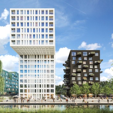 Westerblok is a transformation of an existing building in the ING office complex that dates back to the 1980s. The building will receive a new green façade and a staggered roofline that creates roof terraces at a variety of heights, all enclosing a courtyard with a wooden façade. The compact residential buildings on the western plot, some of which lean a little in order to open up the space and reveal vistas, have spacious corner apartments with expressive balconies.