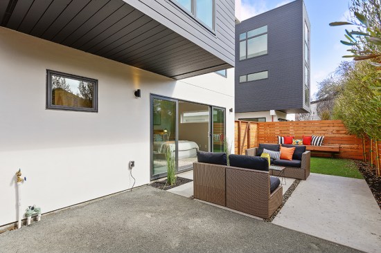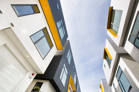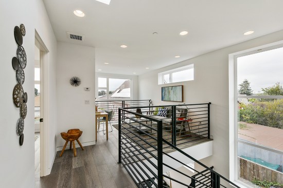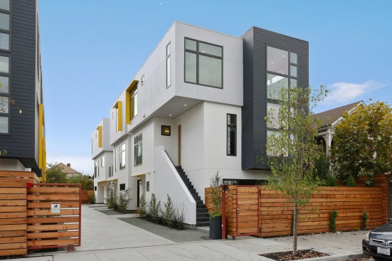 The project takes advantage of Oakland’s mini-lot ordinance to increase density. Sustainable strategies are used to exceed California Title 24 requirements and achieve local green point rating. Specific passive sustainable strategies include site orientation to maximize daylighting, limited finish / structural finish materials, and cool roof and cool south and west facing colors. Active strategies included radiant space heat and on demand water heat.