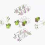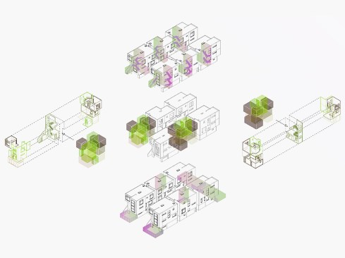 When considering the conflicting requirements that each of the 6 townhomes would need to respond to, the notion of a flexible framework with plug-in elements – much like a 3-dimensional Bento Box – became the design strategy. Various programmatic components slide, mirror, and interchange. Adjustments are based on the context, allowing the house to integrate into its surroundings. This ordered, rationalist approach ultimately resulted in diverse and playful spaces.