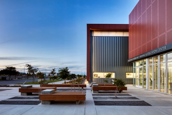 A technically sophisticated facility for hands-on learning, the Center offers the highest possible levels of life safety, security, daylighting, clean air, and the efficient use of energy and water in support of all activities held within. The flexible and adaptable building responds nimbly to the changing needs of the surrounding community, and works to express clearly Salt Lake Community College’s goals and values to its immediate learning community and to greater Salt Lake County. On a highly visible site, the Center’s massing demonstrates its function and interior program while, inside, visual transparency puts training on display to motivate and inspire students.