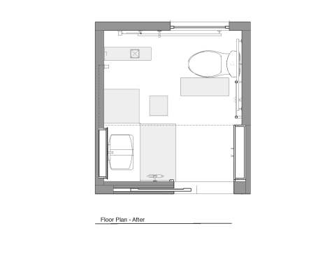 Note also how updates to the 65-year-old bathroom incorporate aging-in-place features requested by the clients. There’s a zero-clearance shower, ADA-compliant grab bars installed to complement the tile work, and an extra-wide, space-saving pocket door.