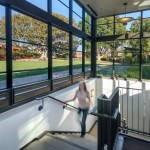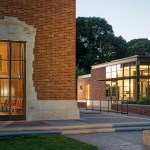 The building received a complete retrofit, utilizing core drilling techniques in which rebar was inserted into drilled holes via the roof. This substantially strengthened the building, yet left virtually no visual impact. Accessibility was improved by the construction of a new entry pavilion with an interior staircase and hydraulic elevator. The pavilion was carefully designed to be compatible with, yet subservient to the 1926 library. Built of glass, steel, and brick, the pavilion derives its appearance from that of the historic library and deftly employs a compatible architectural vocabulary. In its basement is an expanded lobby and orientation room, expanded offices and storage rooms, and an ADA-compliant, gender inclusive restroom. Some features and finishes in the historic building, such as painted ceilings, were also cleaned and restored.