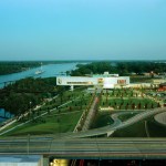 The architectural and site design of this Presidential complex maximizes public park acreage, responds to its riverfront location, connects downtown Little Rock with North Little Rock, and preserves a historic railroad station bridge. To achieve these objectives, the main body of the Center is elevated off the ground plane, allowing the new 30-acre city park along the south bank of the Arkansas River to flow underneath. The building’s bridge-like form emphasizes the idea of connection, makes reference to the “Six Bridges” that cross the Arkansas River and responds to the President’s policy initiatives; the principal entrance is on axis with East Markham Street to emphasize the link to downtown Little Rock. The refurbished Choctaw Station houses the Clinton Public Policy Institute and Clinton School of Public Service, and the Rock Island Railroad Bridge will be employed as a pedestrian crossing linking the site to North Little Rock.