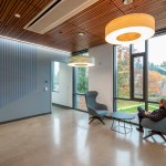 The University of Oregon features a rich environment of brick and decorative terra cotta, traditional materials dating to the early 20th century. With these we created a new architectural language with modern fabrication techniques and a focus on sustainability, durability, craftsmanship and detailing while reinforcing the contextualization of the new building. This is the first campus building to include terra cotta in eighty years, melding innovative performative façade cladding technology with a geometric color field of five custom glazes based on our oil paintings of regional landscape tones. The appearance of the façade alters with the light, lending the architecture a corresponding dynamic. Our custom designed “Norman Cross Bond” pattern with locally sourced bricks reinforces the regional connection, and salvaged Pin Oak trees from the construction site define select public-space ceilings. The result is an ecologically elegant application of the reclaimed wood.