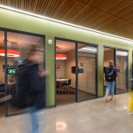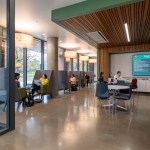 The building houses the interdisciplinary College of Arts and Sciences, Office for Equity and Inclusion, Academic Advising, Career Counseling, and the Career Center. Primary design elements empower the college’s collaborative culture such as student-focused group work spaces for mathematics and writing tutoring and engaged dialogue, small shared-use meetings rooms, flexible state-of-the-art learning environments and classrooms, a café, roof garden terrace, and a highly visible community gathering space called the Commons that flows onto a new outdoor courtyard and green space.