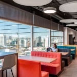 In order to meet Willis Towers Watson’s corporate culture – which places a strong emphasis on connecting office design to the local community, landscape and culture – vibrant colours were used in all of the areas in reference to São Paulo’s iconic grafitti walls. The cafeteria even has two grafitti-like murals, created by Rogério Pedro, and a breathtaking view from the city’s skyline.