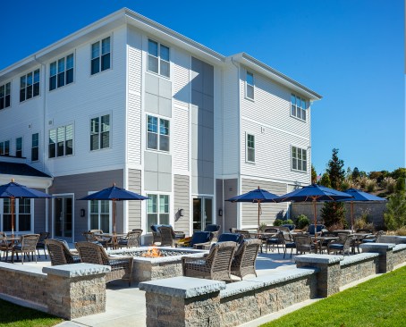 Wingate Residences at Haverhill is a new 64 unit, 61,300 square foot assisted living and memory care community that forms the final component of a full continuum of care campus. Working with a sloping grade on the serene northern Massachusetts site, the firm’s design solution shapes the two-story structure to address zoning limitations for building height, while also serving programmatic needs and providing a visual and physical connection to the surrounding Wingate campus. With an emphasis on resident wellness and mobility, the project offers access to a wide array of community amenities, including outdoor walking trails, a theater, activities room, library, living room with fireplaces, dining room, salon, and a structured fitness program featuring a modern gym. Reflecting a thoughtful approach to all levels of care, the sensitively laid-out, multi-story memory care program allows for free travel from ground floor to the first floor, with a dedicated elevator programmed to work with the building’s wander management system. Interior design by Jess Schuster.