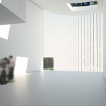 The skin is made of a new recycled glass aggregate material called “Poraver” with natural light to all studios provided by Okalux insulated channel glass and skylights. There are operable glass windows in every studio.