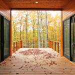 Resolution: 4 Architecture designed this modern prefab cabin for a rural wooded site in Door County, Wisconsin where modular construction simplified the logistics of building on a remote site where reliable labor is not always available. Surrounded by trees filtering dappled light onto the site, this two-bedroom, two-bath retreat offers a tranquil setting for its owners. The design provides connection to the outdoors with the implementation of multiple covered deck spaces. Natural light is abundant inside as a result of the butterfly roof design that allows for tall ceilings and clerestory windows.