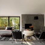 The house utilizes sustainable technologies including sustainably harvested Red Cedar cladding, a solar photovoltaic system, a greywater system for landscape irrigation, native and drought-tolerant landscaping, Caesarstone countertops, and formaldehyde-free MDF kitchen and bath cabinetry.