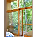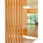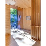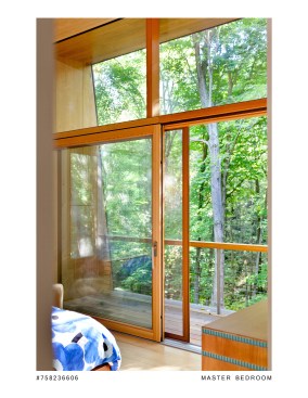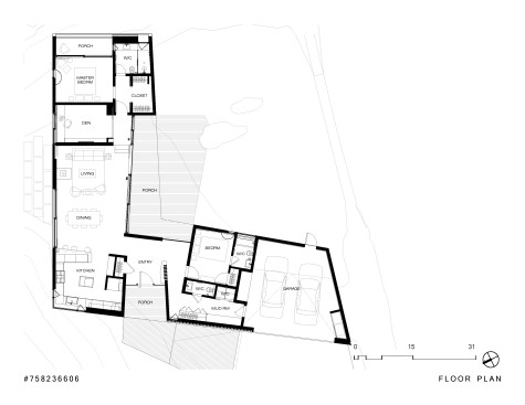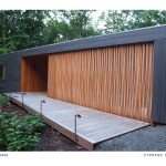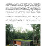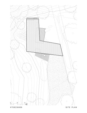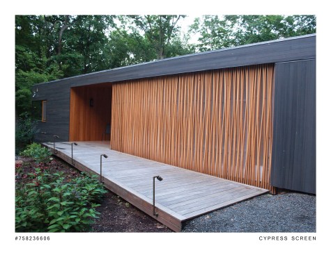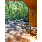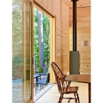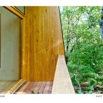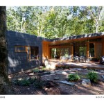 Constructed in 2016, this house for an academic couple perches on a ledge outcropping, overlooking a dramatic wetland ravine. Located on 25 forested acres in the midst of an otherwise typical suburban development, the home’s design reflects the desire of the client to inhabit a peaceful, compact forest retreat that blends into the boulders, creeks, and deciduous trees that abound on the property. Despite the generous size of the property, the architects were challenged to site the home on a relatively small building area, reckoning with steeply sloping topography and extensive wetlands in order to create a sustainably designed, low-impact 2,000 square foot home on a modest construction budget. The home’s design, organized by a compact L-shaped plan, embraces a small clearing in the forest and maximizes opportunities for views in all directions. Designed as a monolithic, sloping volume, the design team selectively subtracted volumes from the facade to create both the main entrance and a large garden porch. Partially protected from the elements, these outdoor spaces increase the livable area of the home by 50%. The center of the home features an open living, dining, and cooking space that can be fully opened to the exterior via large sliding glass doors. In contrast, bedrooms anchor either end of the single-story plan, creating three, separated private retreats with views into the forest beyond. Cantilevered from an exposed rock outcropping, the master bedroom extends into the forest and offers the clients a private, sheltered porch. Further embodying the clients’ sustainable ethos, the home features energy-efficient radiant floor heating, a spray-in closed-cell foam insulated exterior envelope, abundant natural lighting, large operable windows designed to maximize cross-ventilation, a custom-designed cypress screen to reduce heat gain along a glazed, polycarbonate entry wall, a fully-planted green roof to reduce run-off and provide additional thermal mass, and an intentionally minimal landscaping strategy that is largely maintenance-free and creates space for a small vegetable garden. Efficient, sustainably designed, and built to sit lightly on the land, this home is designed to complement and preserve its natural surroundings.