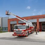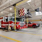 In overseeing the planning, pre-development, architecture, engineering and interiors for the Woodlawn Fire Station, BKV Group created a design that could be implemented in phases so the existing facility could remain operational throughout construction, which began in December 2019. The new station, designed for 24/7 operations, includes a brick structure containing four drive-through apparatus bays for emergency vehicles, as well as an adjacent two-story building, clad with metal panels and brick, housing the station’s administrative office, bunk spaces, kitchen and dining room, locker and shower rooms, physical conditioning facility, gear and medical supply storage, maintenance shop, and decontamination space. The station also includes a separate suite on the first floor for an EMS supervisor.