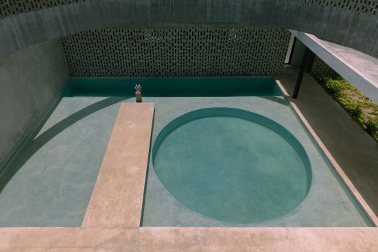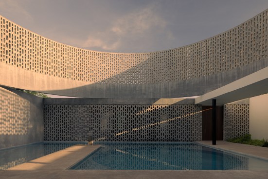 Taking advantage of the orientation of the plot, the function of the central cylinder is to allow the passage of light to the central space, where the pool is located, however, given its great camber, it provides the space with enough shade during sunrise and sunset to exempt the use of a roof on the terrace, allowing the space to be inhabited below shade most of the day. Its strategic location, right next to the interior social area, achieves the link between both spaces by opening all the sliding doors that separate the interior from the exterior.