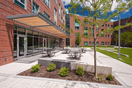 ADD Inc, now with Stantec, strategically designed Faraday Hall to fit its urban environment and appeal to the needs and lifestyle of its students. Its three wings are located along the street’s edges, concealing the interior courtyard from the street.