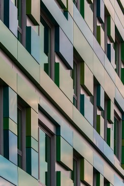 The building features four-bed apartments with single and double bedrooms, full kitchens, living rooms, compartmentalized bathrooms and recreational facilities.