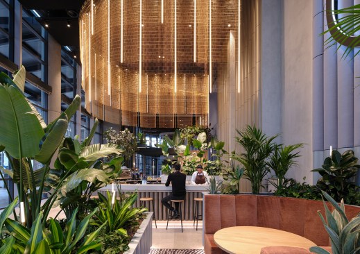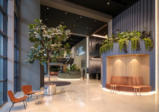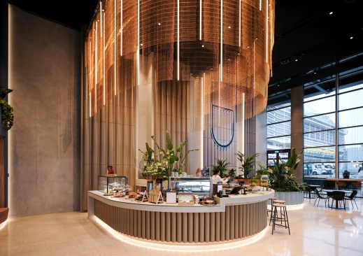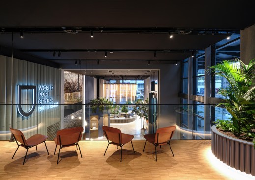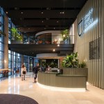The World Port Centre in Rotterdam (WPC) overlooks the city and surrounding harbour from its prominent location at the far western point of the Wilhelmina pier, next to Mecanoo’s iconic Montevideo Tower. Designed by Norman Foster and completed in 2000, the WPC facilities were no longer fit for purpose. Mecanoo was commissioned to upgrade the ground floor and part of the first floor of the 32-storey office building. Good accessibility, improved connections to the outside, social interaction and an inviting street level are principles that guided Mecanoo’s renovation.