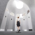 Facing the South China Sea, the Wormhole Library is located in Century Park along the Haikou Bay coastline. The intimately scaled structure is cast of white concrete as a unit. The curved concrete walls not only serve as organic architectural structure, but also connect the ceiling, the ground and the walls together. Holes of varying sizes allow the architecture to breathe and meanwhile let natural light flood the interior. The grey spaces of the exterior corridors provide shady spots for passers-by to stop and rest.