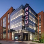 Amongst the first universities to integrate this radio and broadcast media was The Ohio State University in 1920, with the birth of WOSU. The organization’s growth and prompted a move to the university’s new arts district. Faced with the desire to promote innovation and community connection the building’s design developed into a prominent example of WOSU’s goals of transparency and welcome, connecting the university to the surrounding neighborhood.