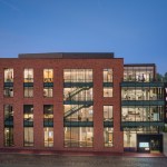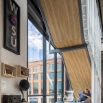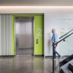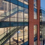 The structure’s design utilizes sustainability principles in its commitment to its location, adjacency to transportation, water usage, energy efficiency, materiality, air quality, lighting solutions, and acoustic performance.