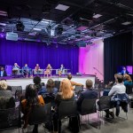 To control the behavior of sound within each of the critical spaces, custom acoustical treatments provide a balance of absorption, diffusion, and reflection. The mechanical systems that serve the broadcast spaces are remarkably quiet, so microphones can capture the subtle nuances of both news and music programs free from noise that could be distracting or interfere with intelligibility.