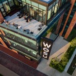 From High Street, the WOSU building appears tucked behind the buildings that line its corridor, with the visible corner encased in glass, inviting the pedestrian to investigate closer. Pushed back from the property’s setback line offers an outdoor amenity that activates the area and further engages the community while accommodating the tight site constraints. Visible is the creative stacking of the programming and a grand staircase offering the visitor a sense of light and clarity of the organization. The staircase connects the above-grade floors, and embracing natural lighting and encouraging interpersonal connection.