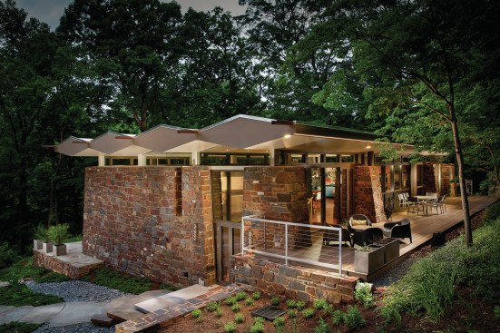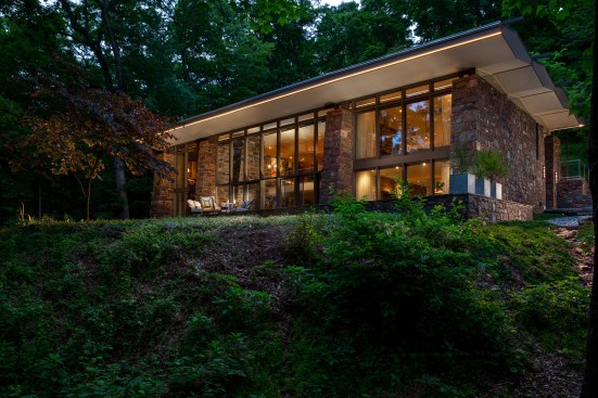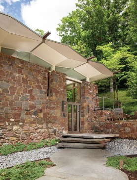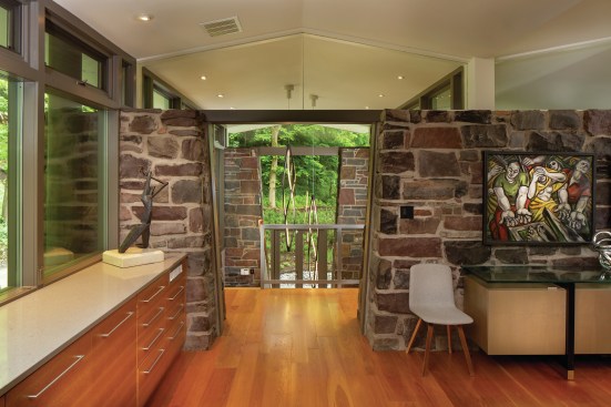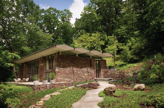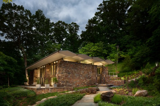 The Fullam Residence, located in Newtown, PA, was an anomaly in the Paul Rudolph portfolio. While it appeared in his chronology of projects, it was originally uncertain if the Fullam Residence was ever built. The original commission requested anonymity, which was honored by Rudolph. The house, sketches and plans were never published during Rudolph’s life, other than in one photograph where the sketch appears discretely on a drafting table with a proud Paul Rudolph hovering in front of it. The residence was “discovered” in 2007 when the aging owners contacted the Rudolph Foundation concerned that many of Rudolph’s projects were being demolished and seeking advice on how to conserve the home. The Foundation was not aware of the residence and photographer Chris Mottalini was the first to publish photographs of the home when he visited with the Foundation. Paul Rudolph conceived the Fullam Residence in 1957 and sketched an initial concept, but it was more ambitious than what was finally built in 1958/59. Although the three bedroom, two bathroom residence that was subsequently designed was true to the original sketch by illustrating strong Rudolph design elements, a partial execution was built. Two out of the three bays of the original sketch were constructed with the intention, (as marked on the drawings), that the home could be expanded on either side while maintaining the original design objective. Fast-forward to 2014 when our architecture firm was commissioned by the new owner to design an addition to the iconic home. We knew that whatever we proposed should complement and honor the integrity of Rudolph’s original design. With our client, we reimagined the residence as was originally intended by Paul Rudolph, based on the original sketches, and executed a design for how our clients live. Throughout the construction process, there were many challenges that were presented. Since the original residence relies on the concept of massing, specifically with heavy vs. light, the stone masonry and large glass window expanses had to match with careful execution. Our firm worked closely with the builder to ensure a seamless transition between new and old. Not only did the new stone size and color have to be identical to the existing structure, but the unique pattern was to be replicated as well. It was identified that the stone walls had repeating patterns, only visible after carefully studying the stone. It was this careful attention to detail that made the new Pennsylvania fieldstone appear that it came from the same lot as the existing home. Atop the new flanking stone wall, the solid mass of the undulating roof extending from the existing roof appears to float above the trapezoidal windows. This roof configuration, part of Rudolph's original creation, allows the winter sun to penetrate into the space, passively heating the massive stone walls, while also providing shade from the warm summer sun. Careful research by our client, who is an aficionado of Rudolph's work, led him to find a custom window company in Europe that specializes in passive solar and who was able to create custom triple pane windows to match the existing. Also adding to effectiveness of the glazing, all the existing northern windows were replaced with matching triple pane windows. In an effort to amplify energy economies where possible, all lighting in the house was also converted to LED while keeping with the style of the existing light fixtures. Our firm additionally used spray foam insulation in the new construction to maximize the building’s energy performance. These modifications, along with others, made the structure exceptionally energy efficient. While this project presented many challenges to preserve the original design integrity, it was nevertheless a project we thoroughly enjoyed. We are honored to have been able to complete a historically sensitive addition on a home designed by one of America's most iconic modern architects.
