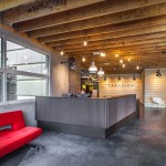 As a new corporate headquarters in Middleton for a vibrant software company, this project repurposed a windowless medical equipment production space into a dynamic work environment – increasing employee engagement and efficiency while accommodating future growth. Reflecting the highly technical and abstract nature of its work, the new office supports collaboration and sharing of information. To represent the company’s experience in the building materials software industry, the workspace features unique and local materials used in original ways. The design solution balances work intensity with social areas to encourage high quality results in an exciting relaxed environment. At the heart of the space is a large central gathering area flexible enough to host company-wide events. It is surrounded with breakout meeting spaces that allow for choice in working environments and provide energy and animation. Simple everyday materials were used to create visual effects and encourage interaction. The interior features barn doors made from old hemlock planks once supporting roofs at the Badger Ammunition Plant and hardware fashioned from steel pipe from Cave of the Mounds. Lighting is used to highlight materials, texture and color and to provide a more theatrical feel.