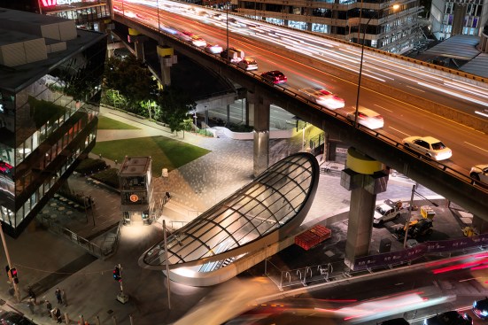 Linking Wynyard Station to the western corridor of Sydney’s CBD, Wynyard Walk consists of a series of above and below ground urban interventions including a nine-metre wide pedestrian tunnel, bridge, plaza and a new civic building connecting the existing Wynyard Station.