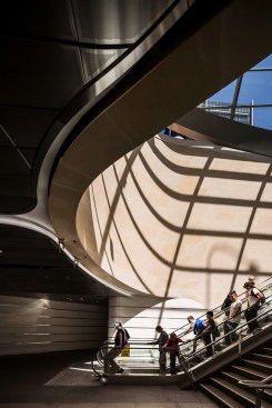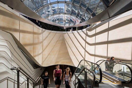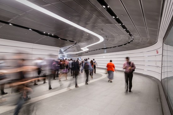 In the heart of Sydney sits Wynyard Walk: a fully accessible pedestrian link designed around the concept of ‘flow’. The design challenges the perception of a transport interchange, shifting the emphasis from efficiency of travel to the quality of experience, with the forms optimised to capture the largest volume of space and ease pedestrian movements through its curved profiles, rounded corners and sinuous forms.