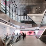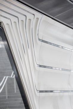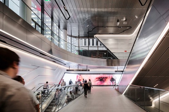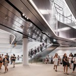 The western portal and glass canopy acts as the most visible landmarks of the project, increasing traffic capacity of the station to meet current and future demands. The shape of the canopy was parametrically modelled and tested in wind models to ensure weather protection while allowing fresh air and natural light into the tunnel.