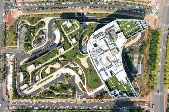Advanced technologies have been integrated to maximize the building’s environmental factors; sunshine considerations, shading mechanisms and rainwater recovery are some of the processes that help improve its energy saving. Its façade was meticulously thought through to make them become the lungs of the building, its air circulation breaths through the gaps of its skin mesh, making it an effective and straight forward ventilation strategy.